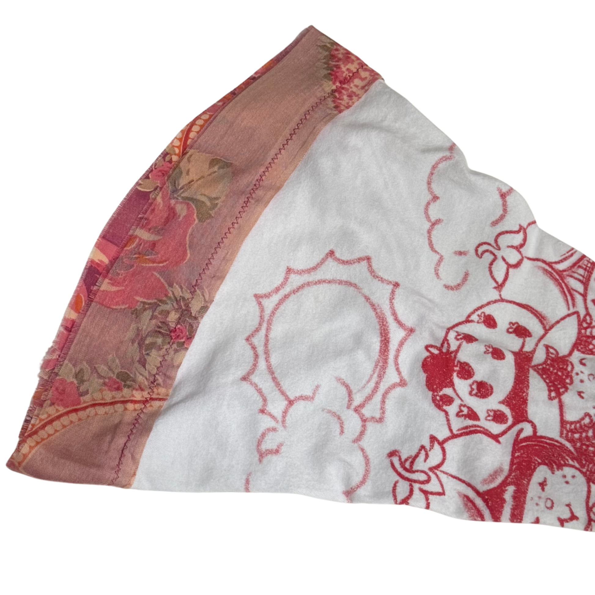 Strawberry Shortcake illustration on a soft white crown, paired with a rosie art deco floral brim. Whimsical nostalgia meets modern play.
