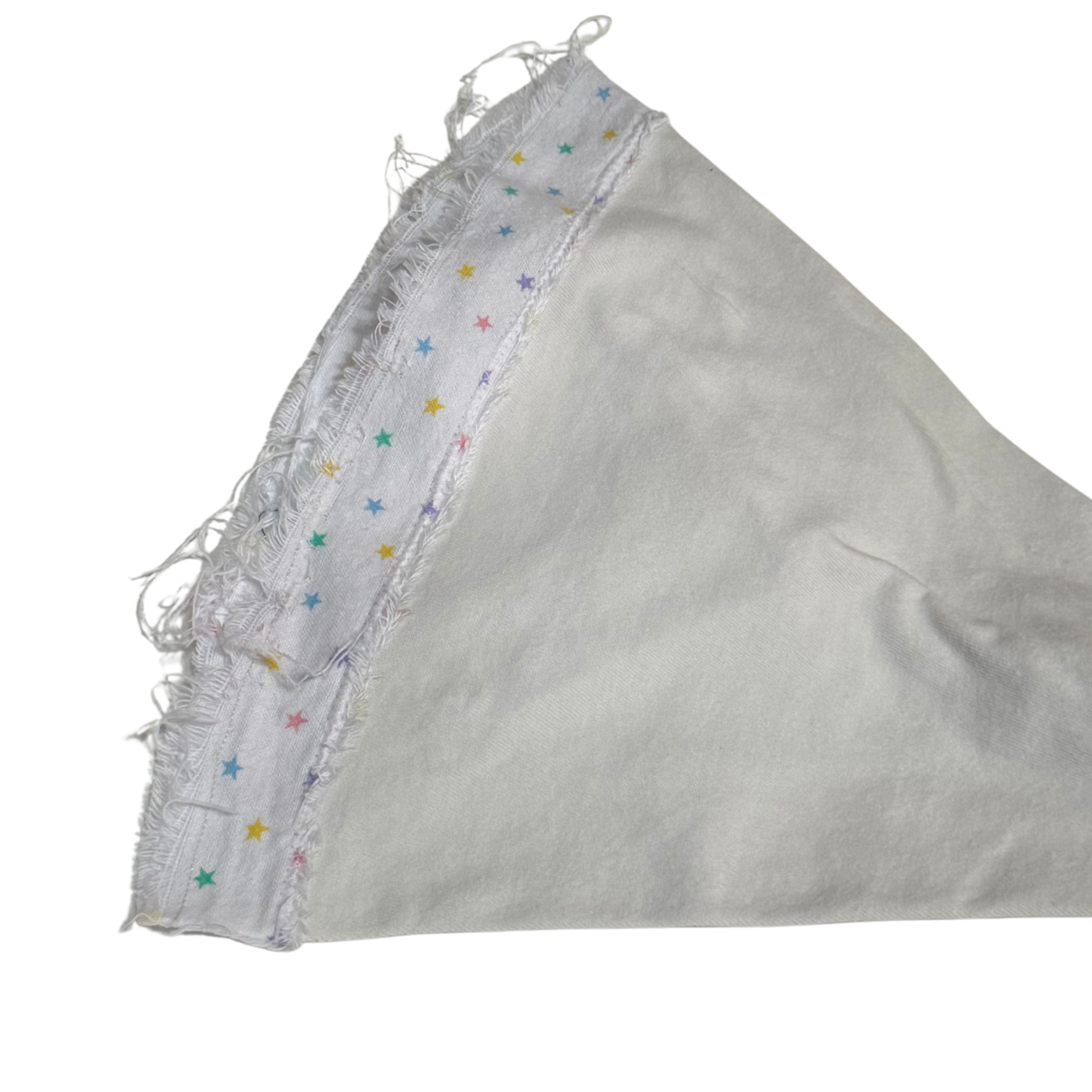 Cream crown with a brim of rainbow stars, a soft glow captured in fabric. Slightly snug for closeness without strain.