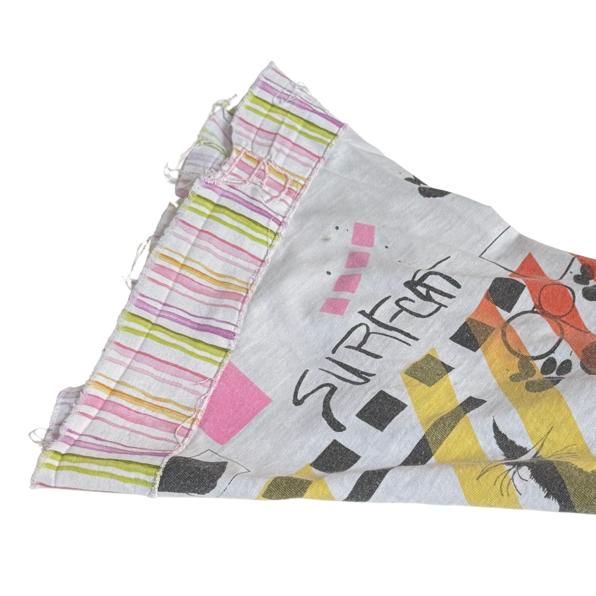 A gray white crown in soft cotton paired with a rainbow striped thin brim. Multicolor energy balanced by softness.