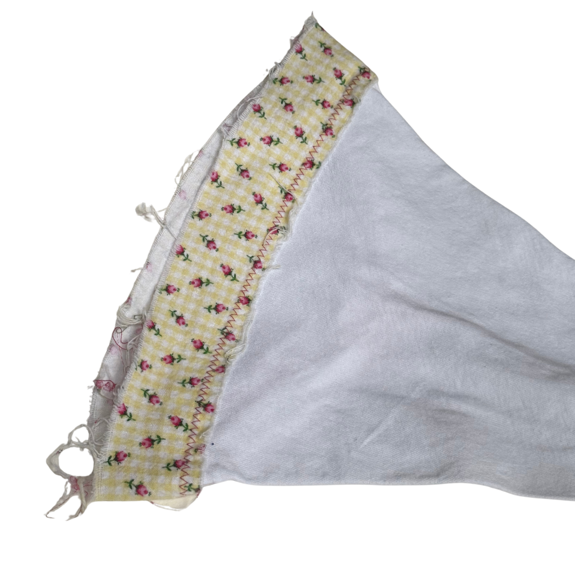 A soft dream in pale yellow and white, scattered with roses like whispers pressed between the pages of a favorite book. This snug fit feels close to the head, yet airy in its delicate weave, the kind of hat that turns sunlight into memory.