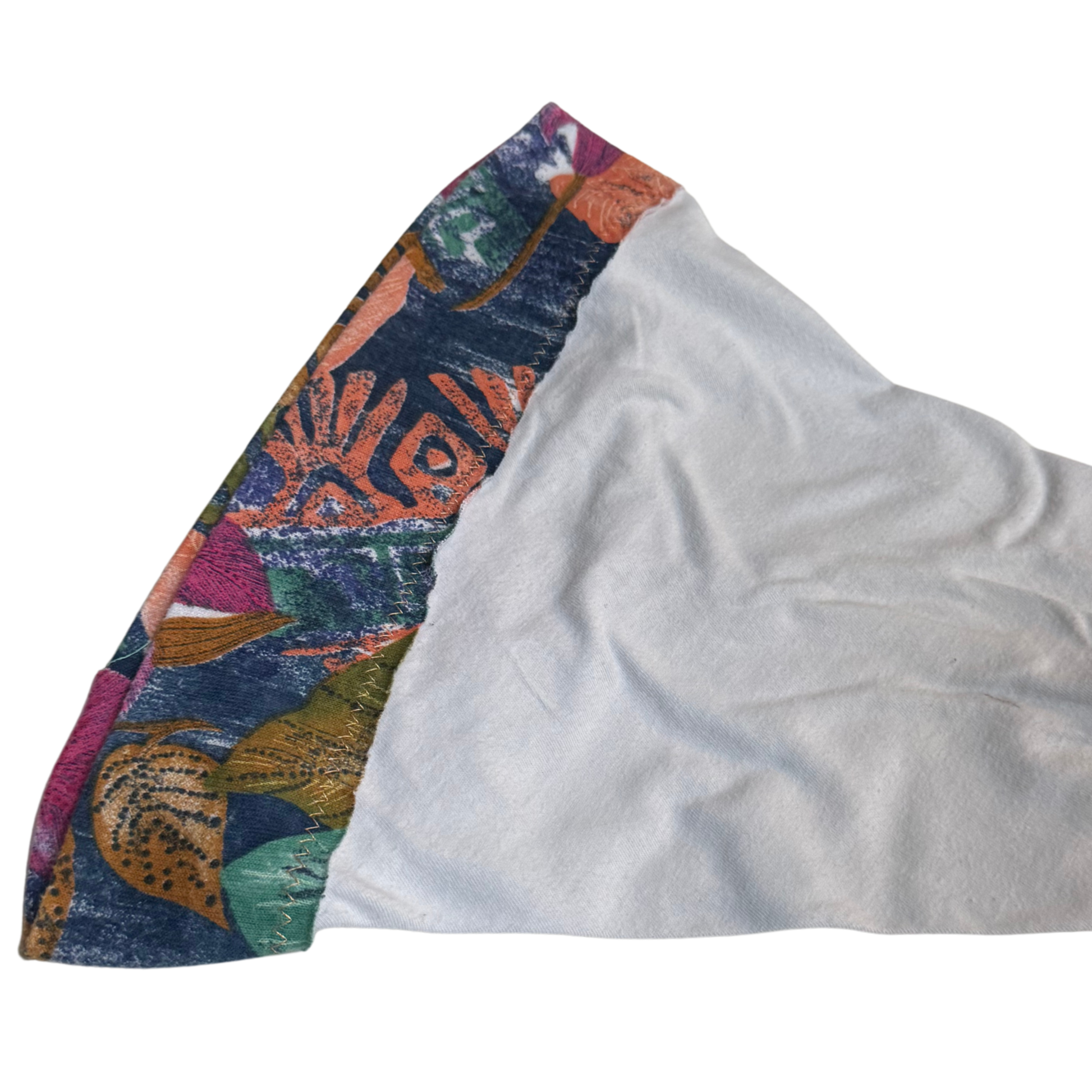 A white crown in medium cotton paired with a brim alive with tropical pattern. Hints of stretch make it both playful and resilient.