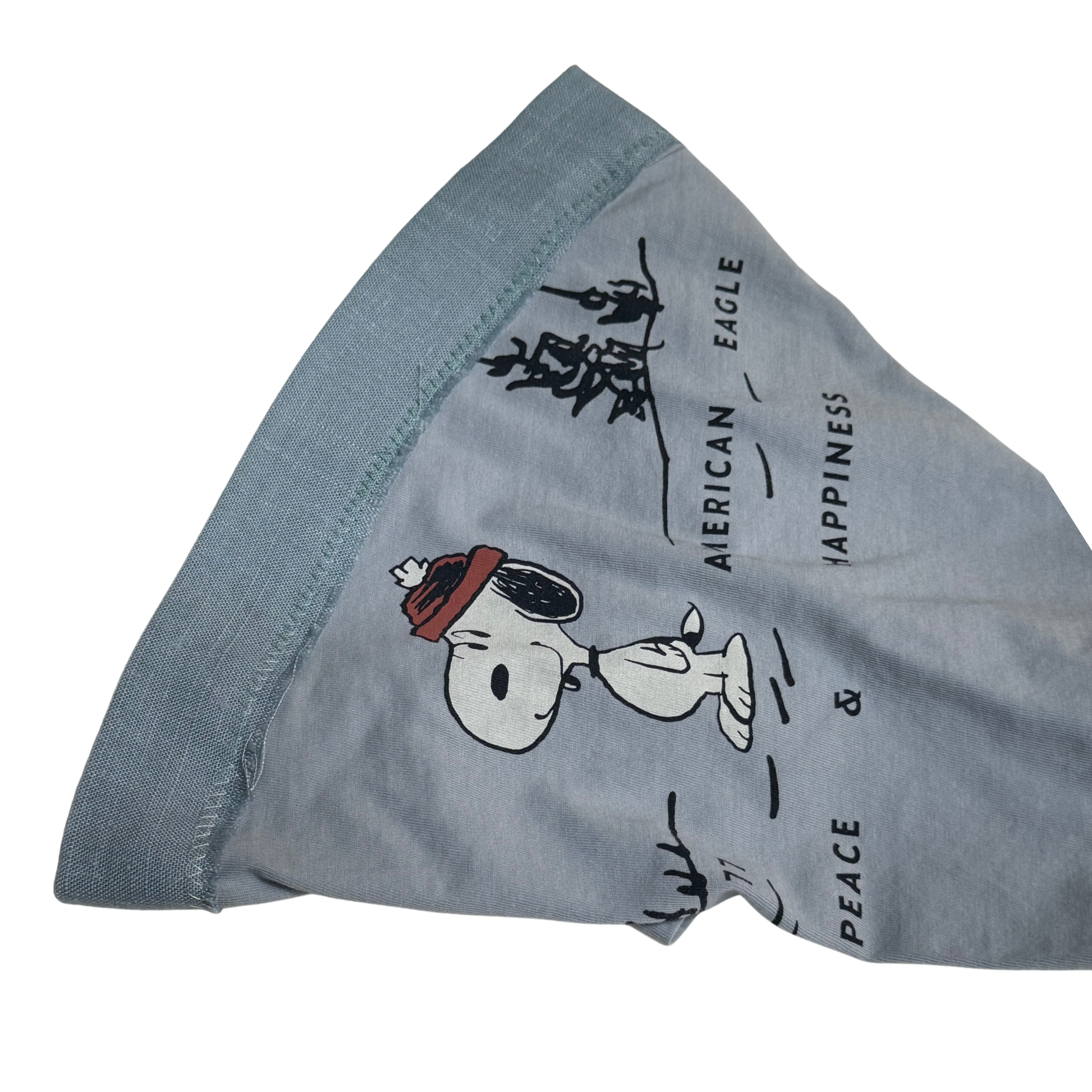 - Color and pattern: Pale blue Snoopy graphic, maroon folded brim